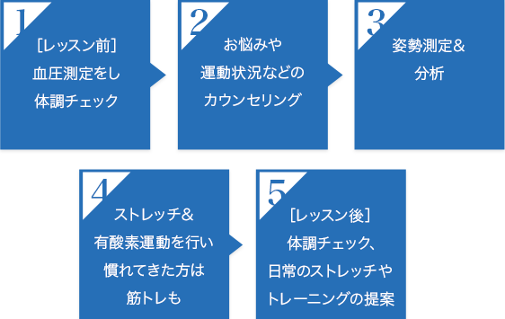 ひとり一人の悩みや体に合わせたオリジナルレッスン
